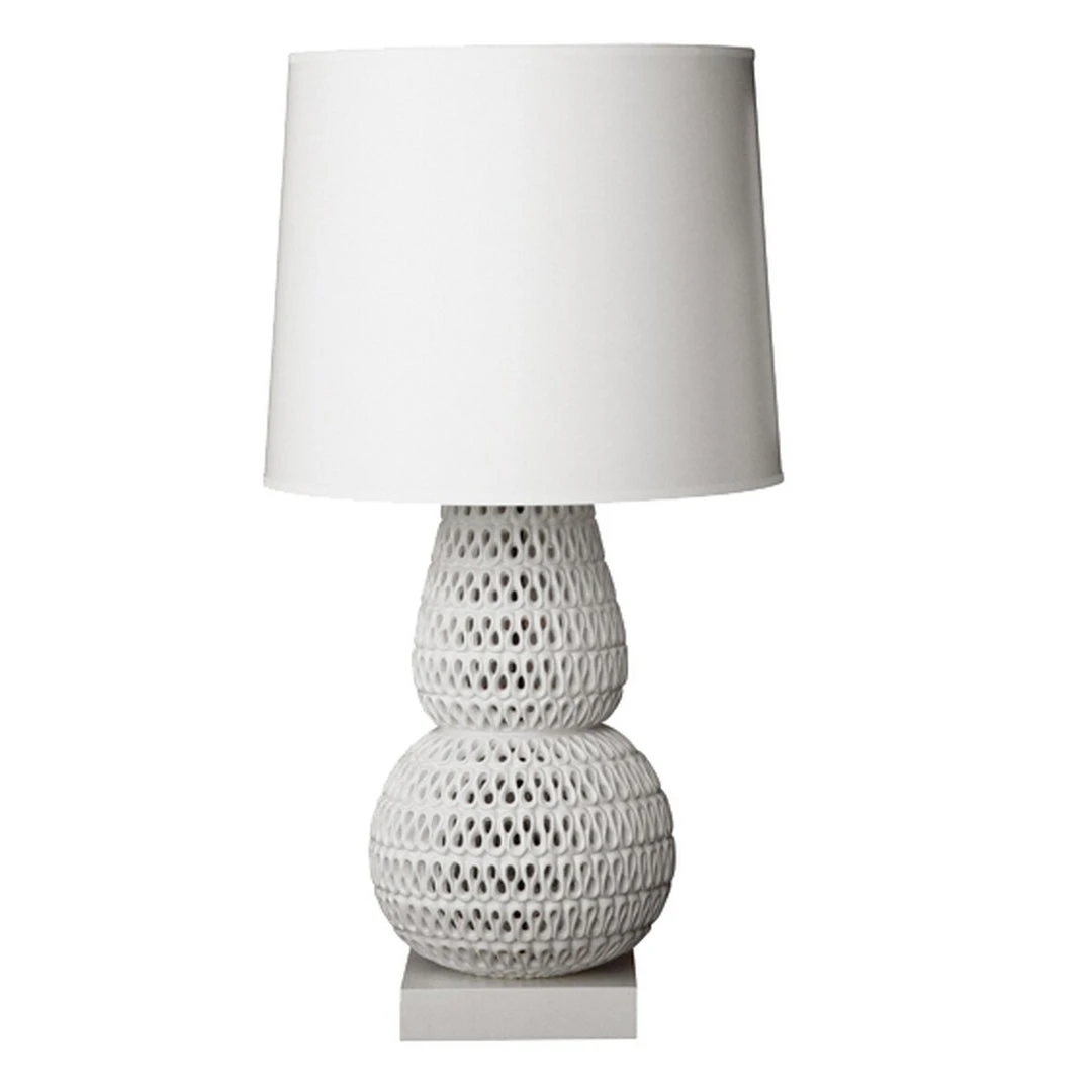 The Pipa Table Lamp presented by Oly Studio is a stunning example of a chic design that weaves texture over texture. Intricate swirls created by a skillful artisan adds a whimsical nod to this unique lamp. The Pipa is crafted from pierced cast resin in sleek white with a hardwood base and is the perfect piece for living spaces and bedrooms alike.