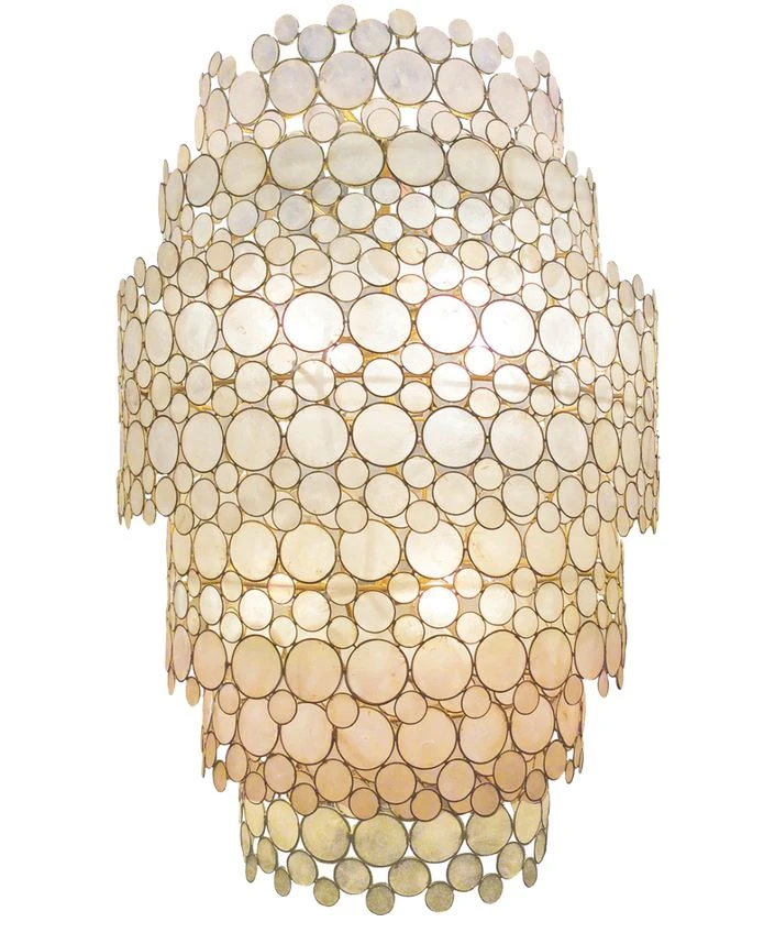 A delicate masterpiece, the Serena Waterfall Chandelier from Oly Studio delivers a stunning hanging light for your home. Hundreds of capiz shell discs are crafted together on a brass frame to form this elegant six-tier waterfall chandelier. Place this striking chandelier in entryways, master suites, and dining rooms for elegant coastal style.