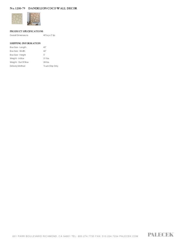 Be the first to review “Palecek New Arrivals Dandelion Wall Decor” Cancel reply