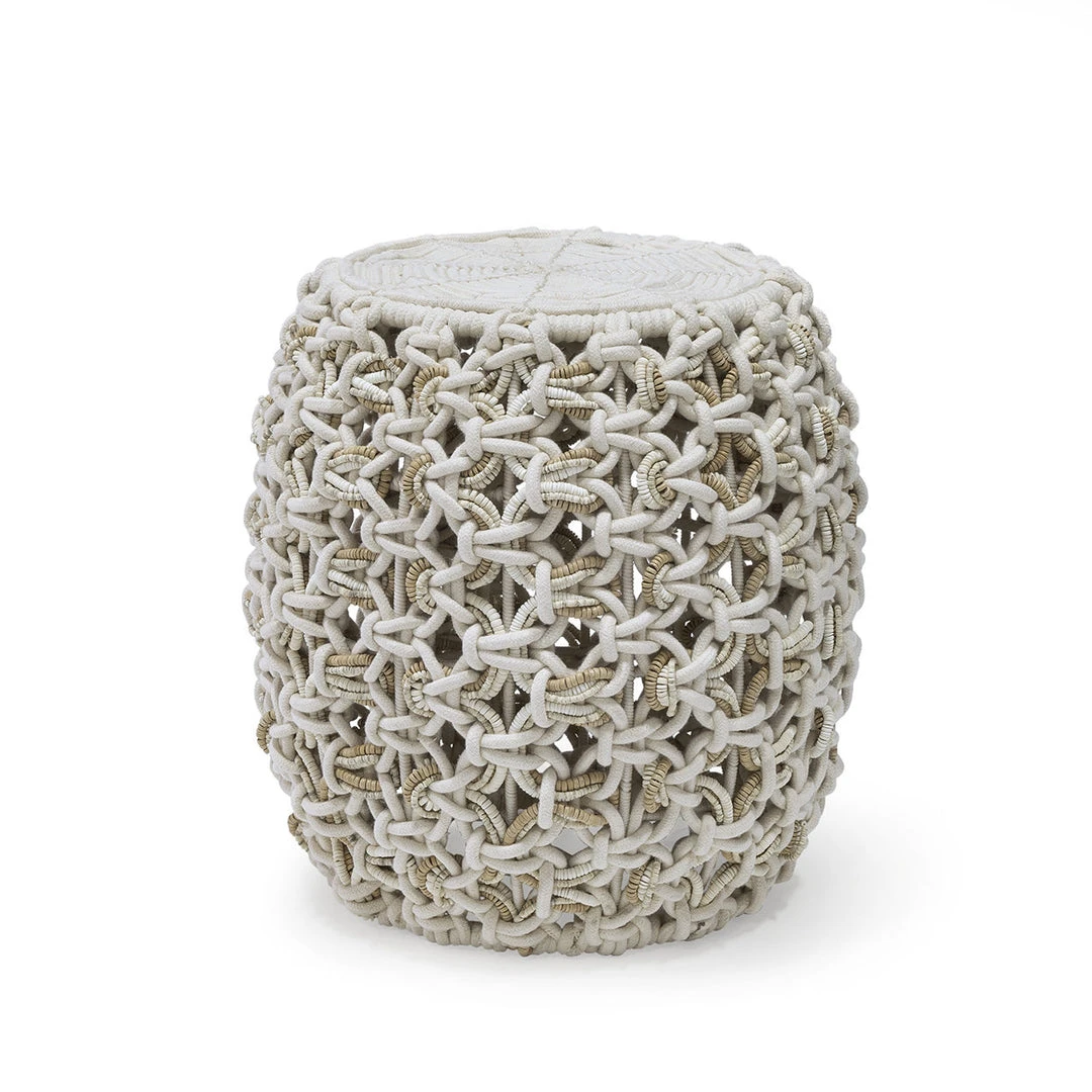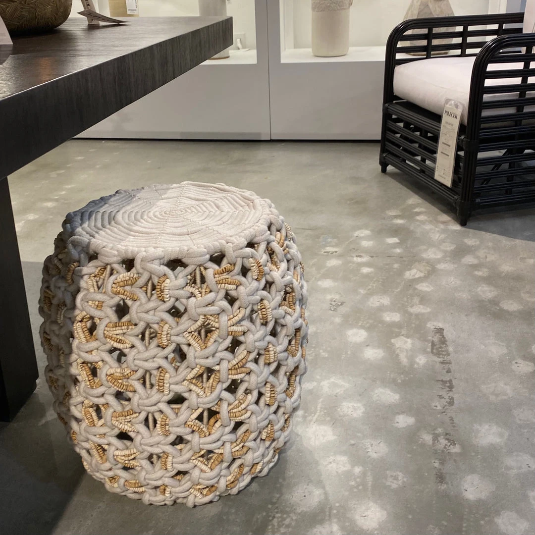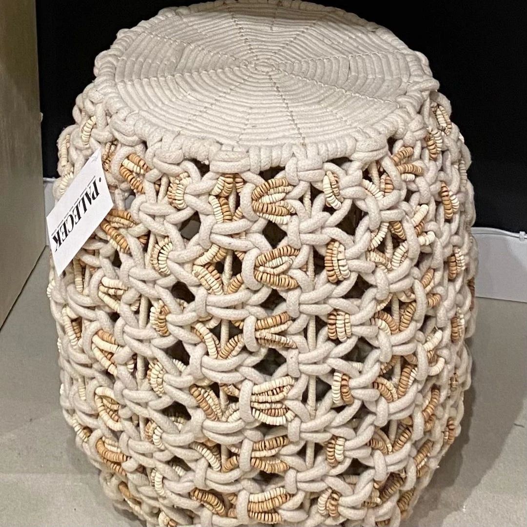 The Willa Hassock presented by Palecek offers versatility and easy coastal style for your home. The Willa is handcrafted with coconut beads in white and natural combined with a hand-woven natural cotton cord placed over a metal frame. Consider the Willa in pairs for living spaces to act as additional seeing or a comfy footrest.