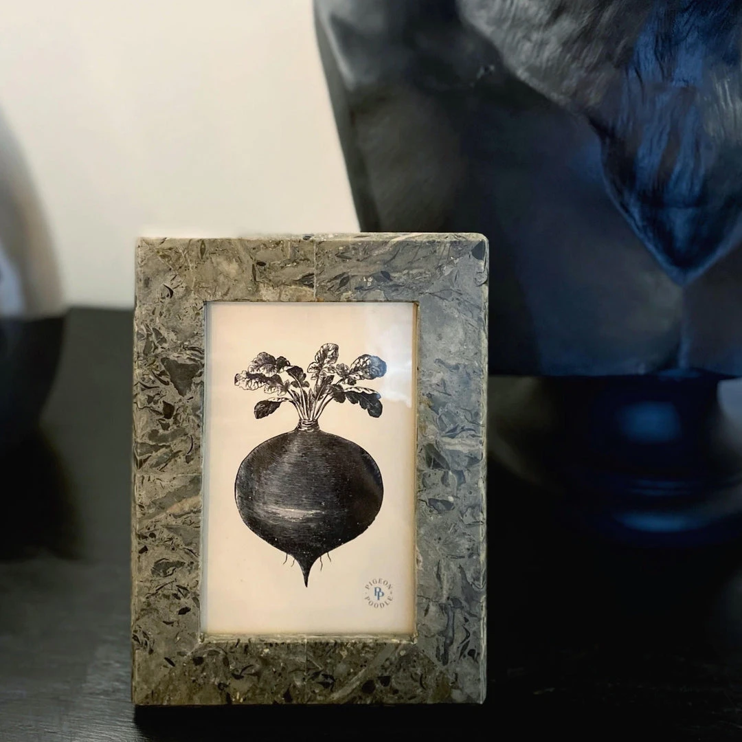 The Corsica Frame in Mixed Gray Marble from Pigeon and Poodle showcases your memories in chic style. Chic gray marble takes the Corsica frame from simply stunning to stunningly refined.