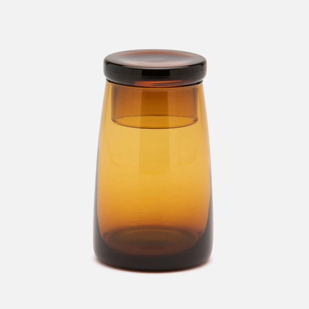 The Hawley Carafe in Amber Hand Blown Glass from Pigeon and Poodle features a wide hand-blown glass carafe with a short tumbler. This stylish piece is perfectly placed by the bedside or bathroom counter and delivers a touch of designer style to your home.