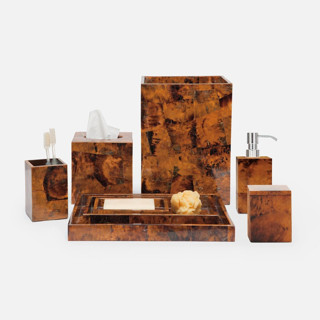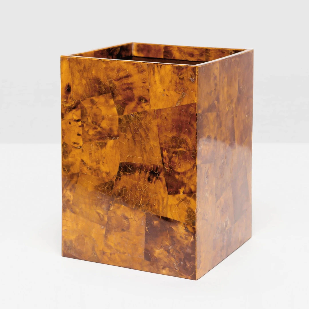 Add an instant air of sophistication to your decor with the Cannes Wastebasket in Young Pen Shell from Pigeon and Poodle. The tortoise shell-like elegance of the Cannes collection is the perfect choice to deliver designer style to your bathroom.