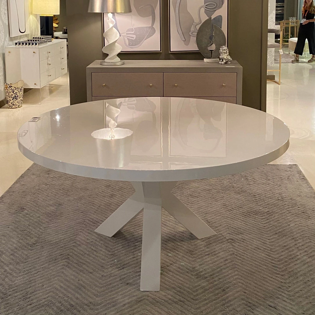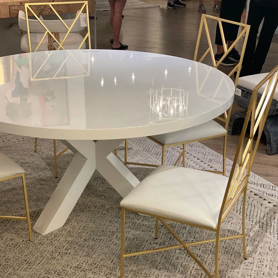 The Greer Round Dining Table from Worlds Away makes the most of its modern, minimalist shape. The tripod wood base offers a handsome, sturdy foundation, and a glossy white lacquer finish adds visual depth and modern appeal. Greer comfortably seats six.