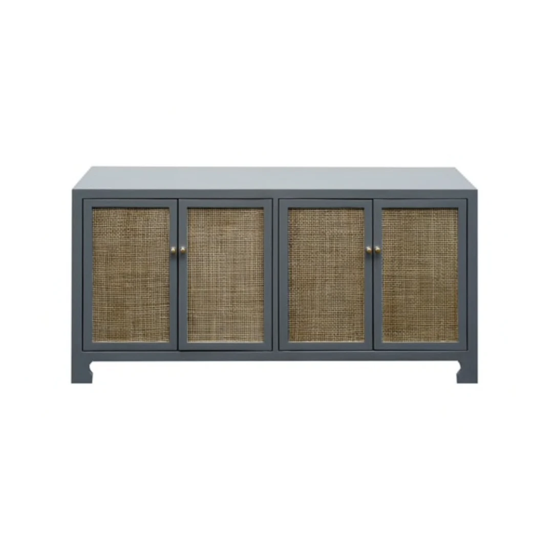 | Materials | Wood; Cane Doors; Gray Lacquer Finish |