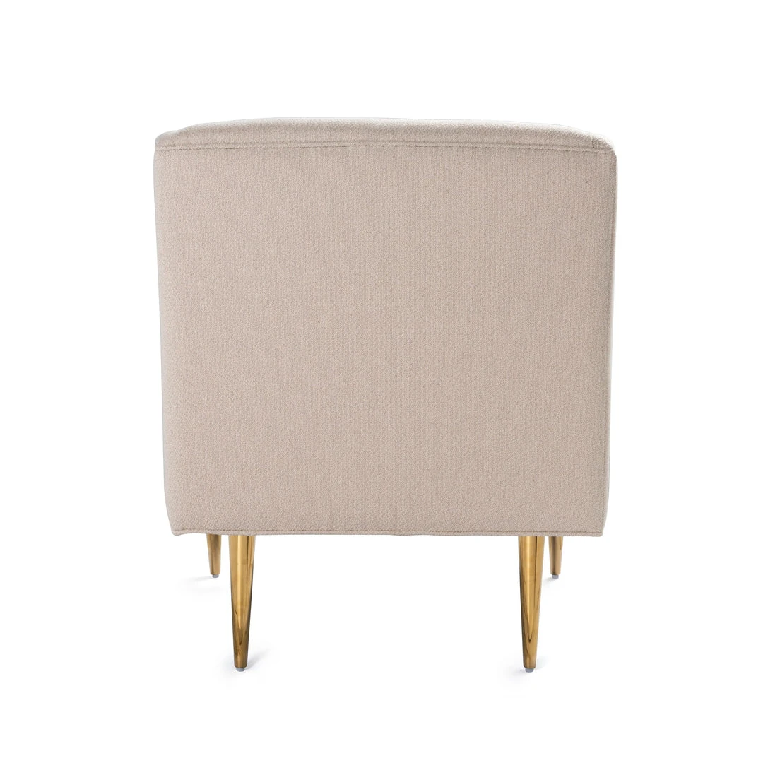 The Worlds Away Wrenn Chair in Natural and Brass features plush upholstery with brass metal legs. The Wrenn is inspired by contemporary style and is perfectly paired with an equally sleek design. The Wrenn Chair is a beautiful mix of comfort, functionality, and luxury and is ideal seating for your den, bedroom, home office or living room. *Upholstery is foam fill and spot cleaning is recommended.