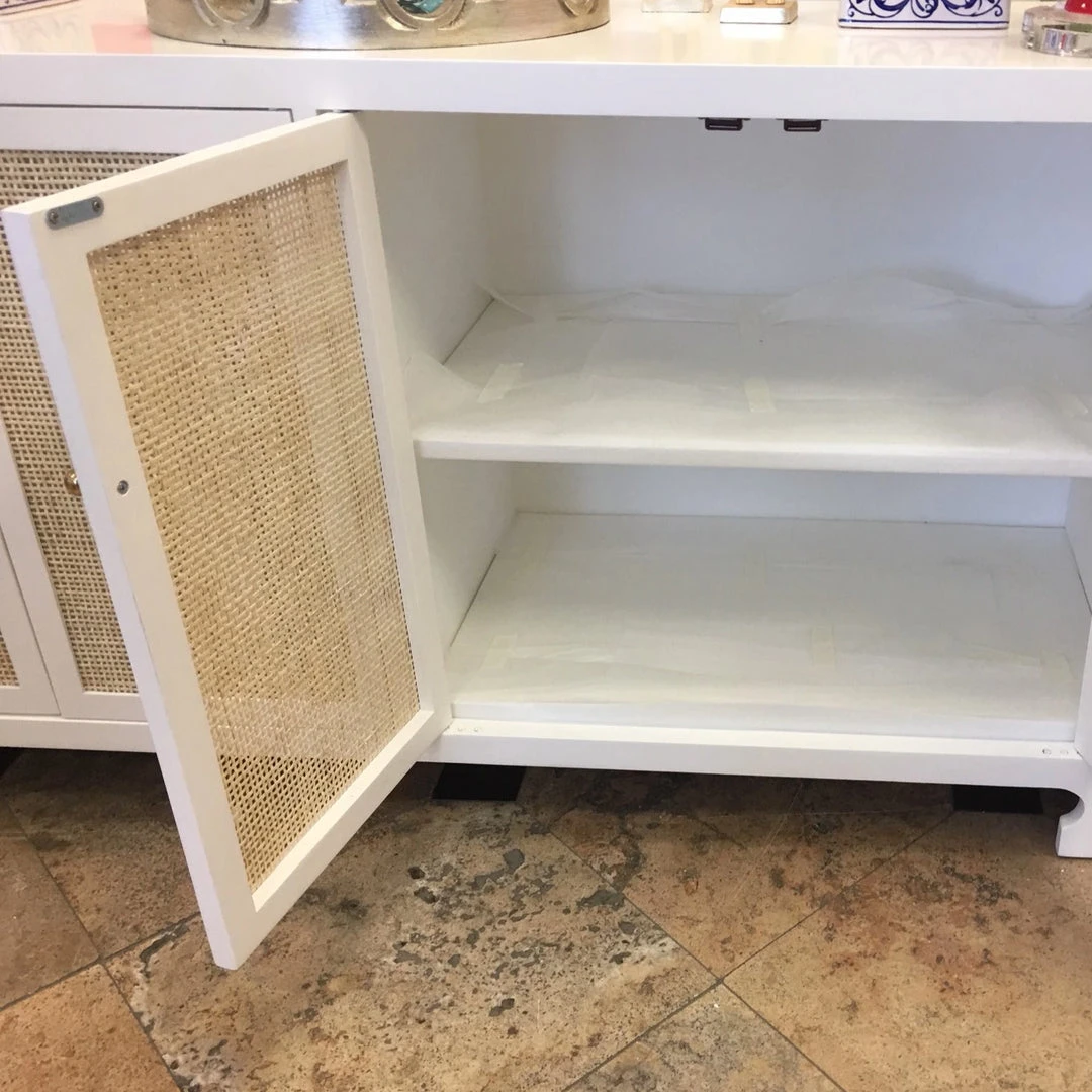 | Materials | Wood; Cane Doors; White Lacquer Finish |